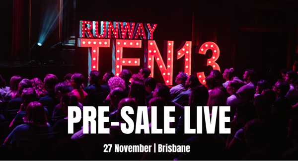 Runway is TEN13ās flagship event in Brisbane (Nov 27) - a full day with Australiaās leading founders, investors, and innovators, all under one roof. Last year sold out, and this year will be no different. Weāve opened 100 exclusive pre-sale tickets, on sale NOW!